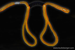 Fabricated using NEREX-2 polyester single braid rope, each sling has a pair of adjustable eyes and a central lifting point that is protected with chafe sleeve. These adjustable eye slings are perfect for applications such as lifting transformers.